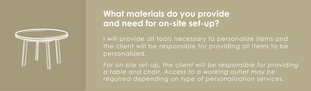 From weddings to luxury events, live artistry adds an elegant, interactive touch. Whether it’s hand-lettered place cards, engraved favors, or personalized gifts, each piece is crafted on-site, creating a moment guests will treasure.